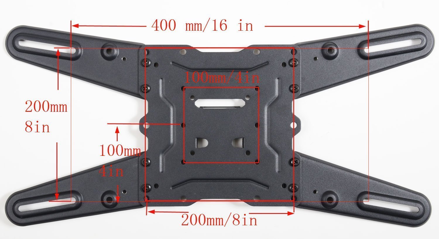 - Heavy guage steel supports screens up to 88 lbs. compatible with VESA (mounting hole pattern) 400x400mm/400x300mm/400x200mm/300x300mm/300x200mm/200x200mm/200x100mm/100x100mm (16"x16"/16"x12"/16"x8"/12"x12"/12"x8"/8"x8"/8"x4"/4"x4")