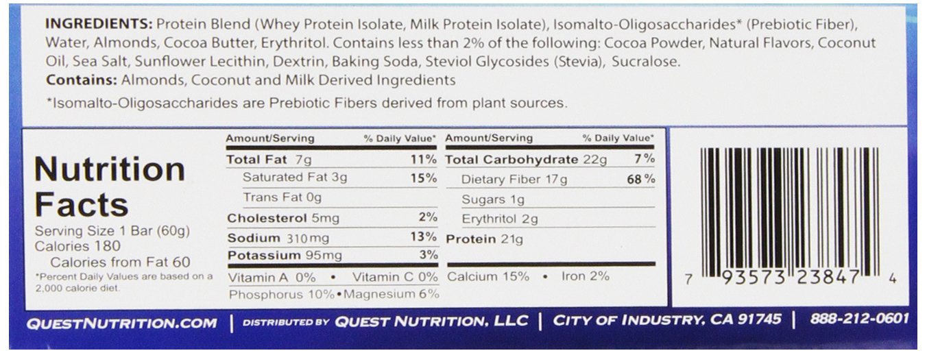 Bite into real cookie crumbles and delicious cream with absolutely no guilt. The Cookies and Cream Quest Protein Bar has 21 grams of protein, tons of fiber and no sugar added. #Cheat Clean with the most amazing Quest Bar flavor yet. They said that this protein bar couldn't be made but we finally did it. It's a healthy food that makes no compromises. Just read our ingredients and you'll see. 5g Non-Fiber Carbs. 20g High Quality Protein. Gluten Free. No Sugar or Sugar Alcohols Used. The only protein bar with a perfect nutritional profile. Quest is the first bar you can eat guilt free. To bring you a bar this healthy and this tasty, we had to create a whole new process for making bars. Quest is so revolutionary, in fact, that we've filed a patent. That's why you won't see anything else like it on the market. Quest is the first truly low car bar that doesn't contain glycerin, simple carbs, uses no sugar, and no sugar alcohols. Quest bars are the only bars that you can eat without feeling guilty. Never compromise.